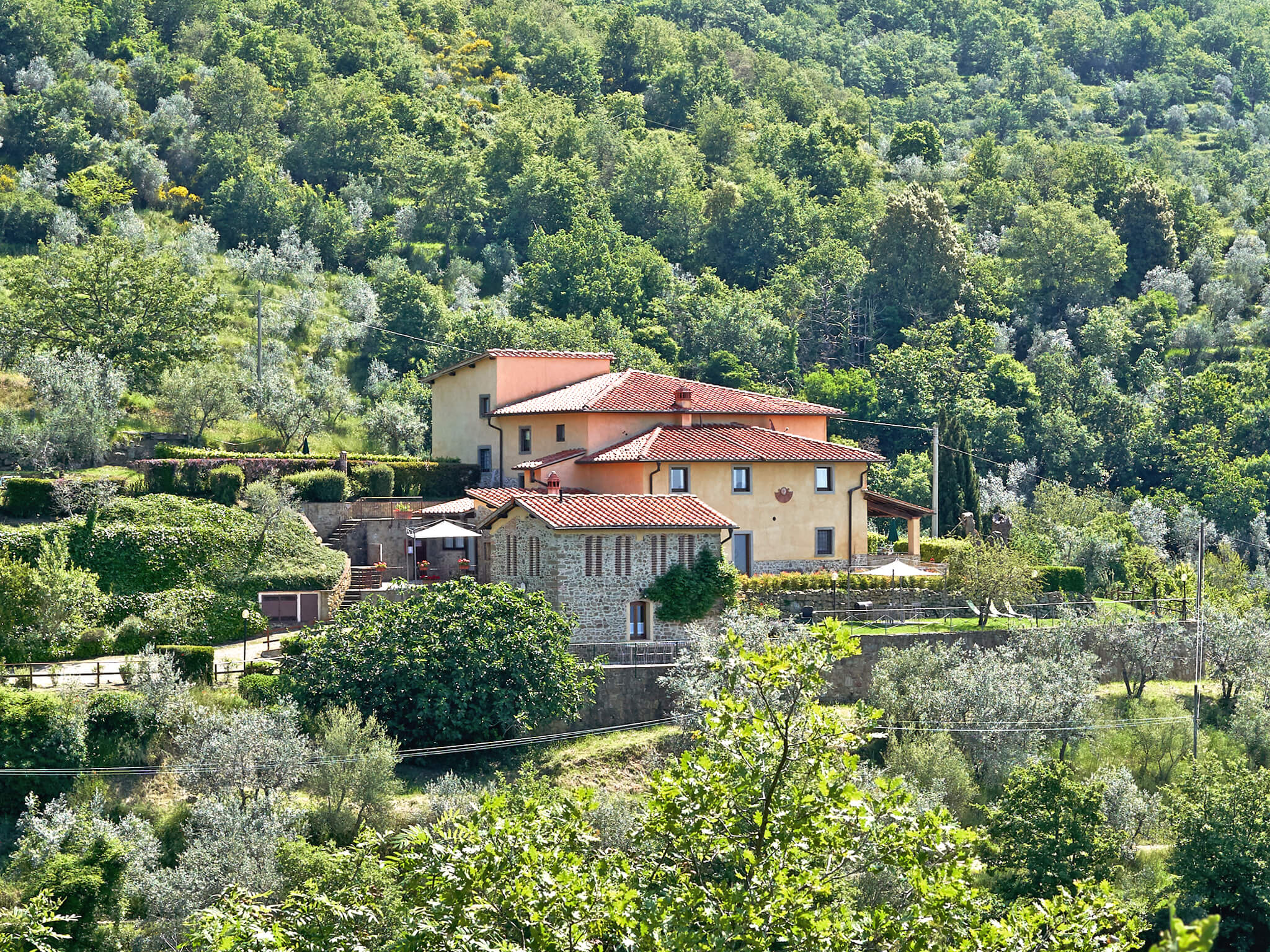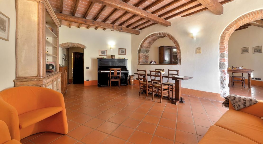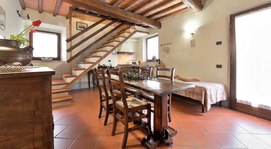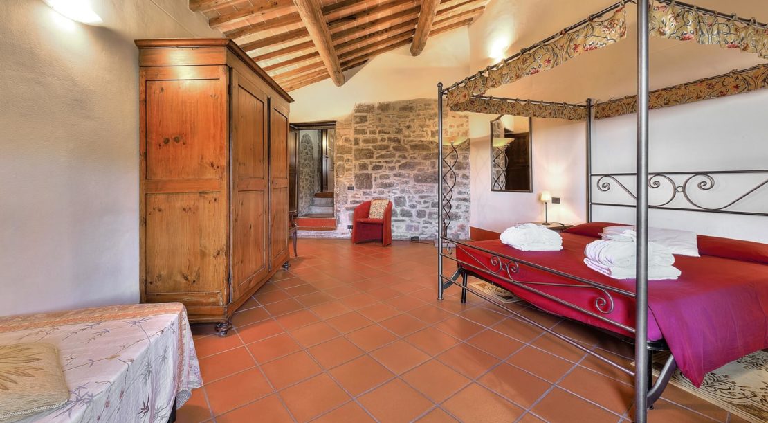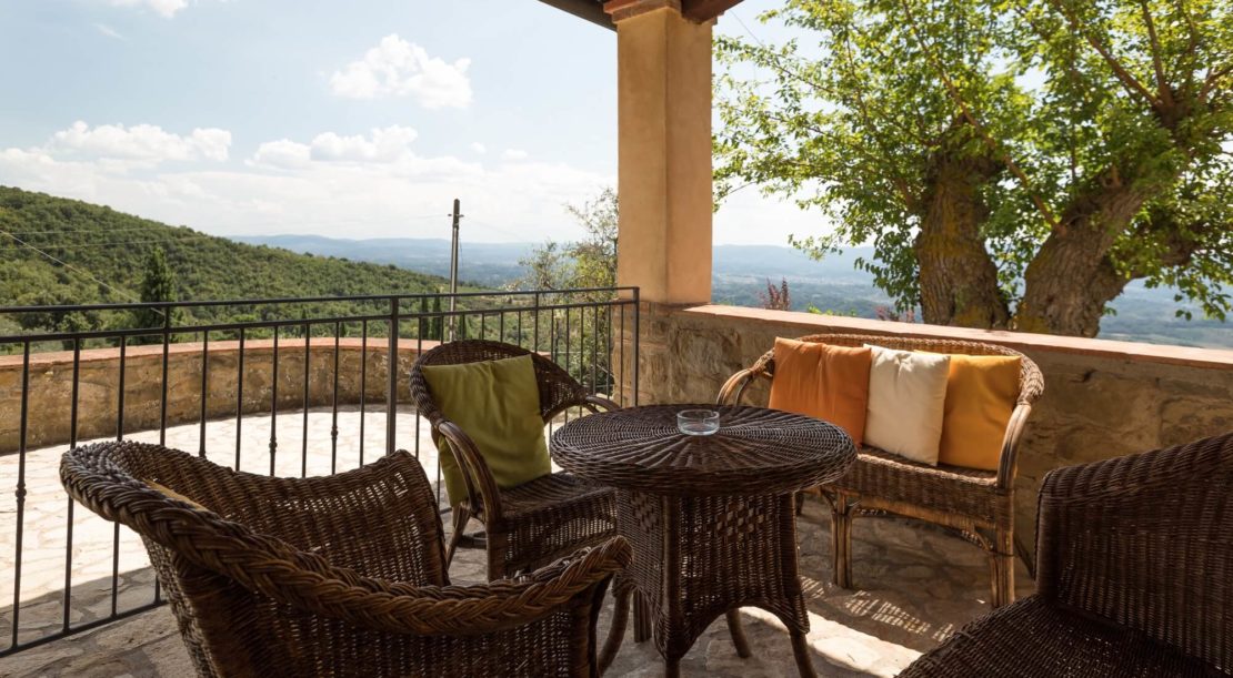 Podere Casarotta is a XVIII century Tuscan farmhouse which has been carefully restored and converted in holiday house with private swimming pool and six luxurious apartments. The villa initially belonged to the “gonfaloniere” (the ancient mayor) of Loro Ciuffenna; then was run by farmers that made a living with their own production of olive oil and wine. The farmhouse was later owned by the Antinori family, and by the S.Maria nuns. On an original stone of the main building is carved “1774”, that is the date when the farmhouse became part of the Loro Ciuffenna municipality. The villa went through a conservative restoration maintaining as much as possible the original Tuscany architecture. All rooms have terracotta floors and wood-beamed ceilings.