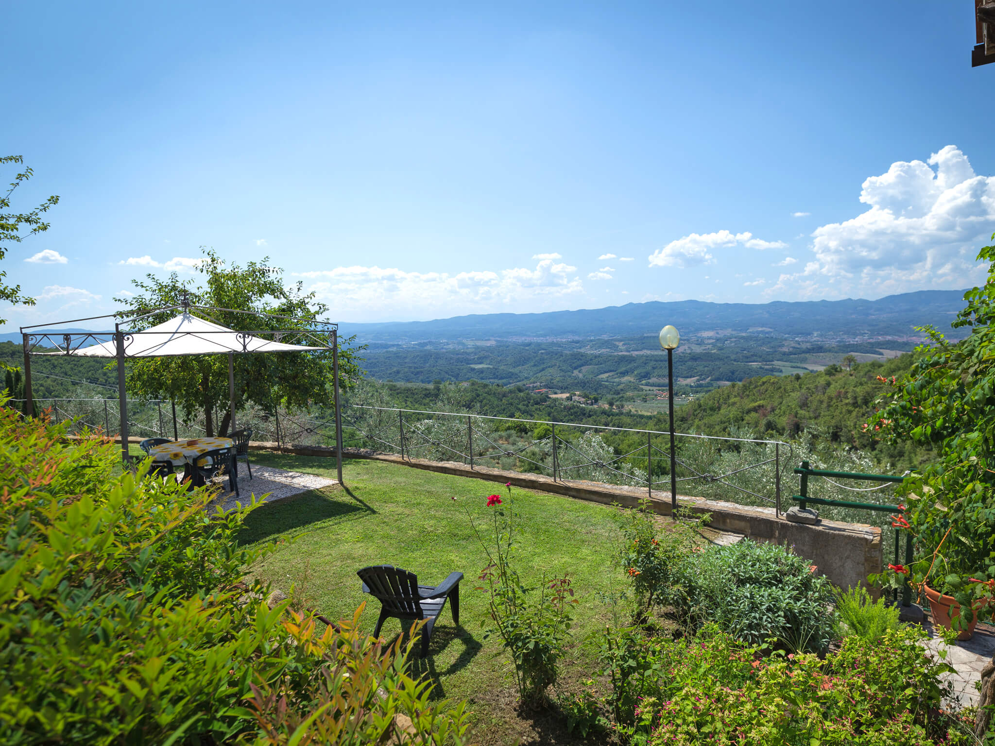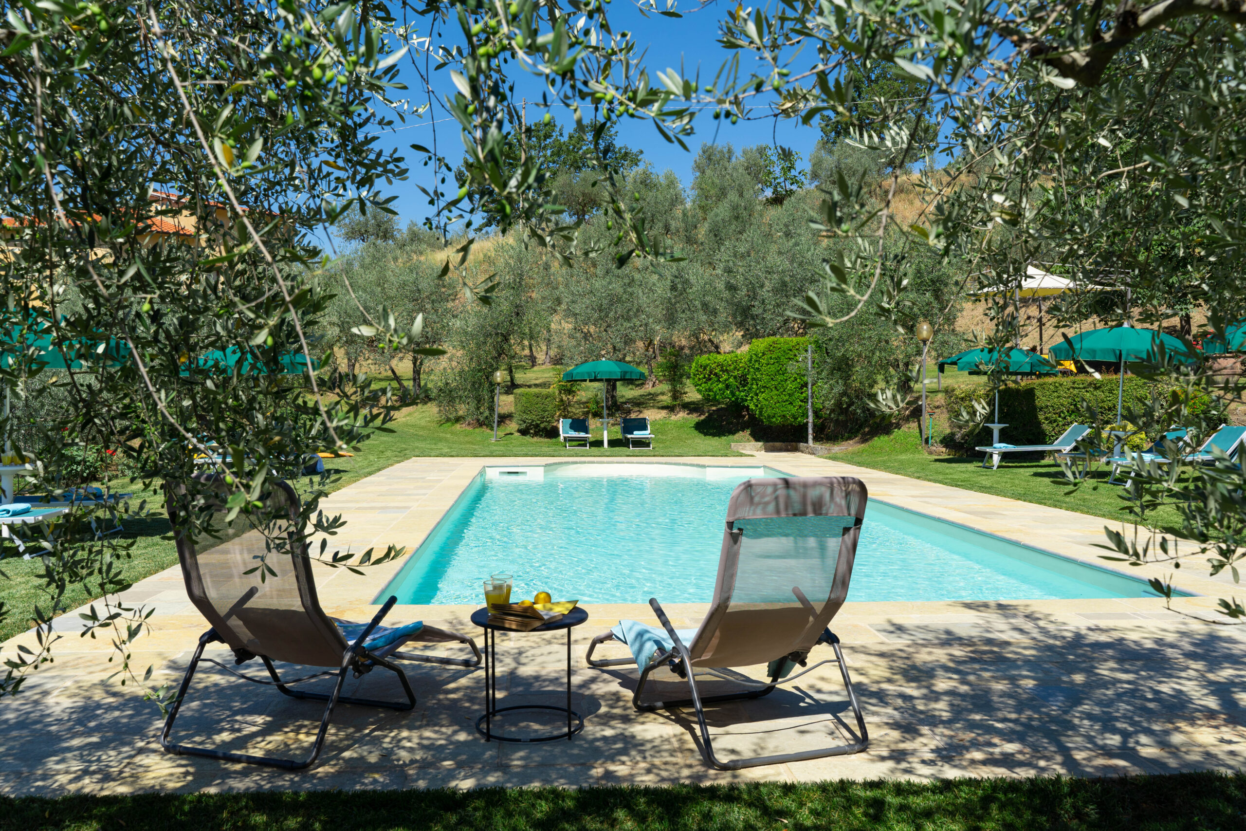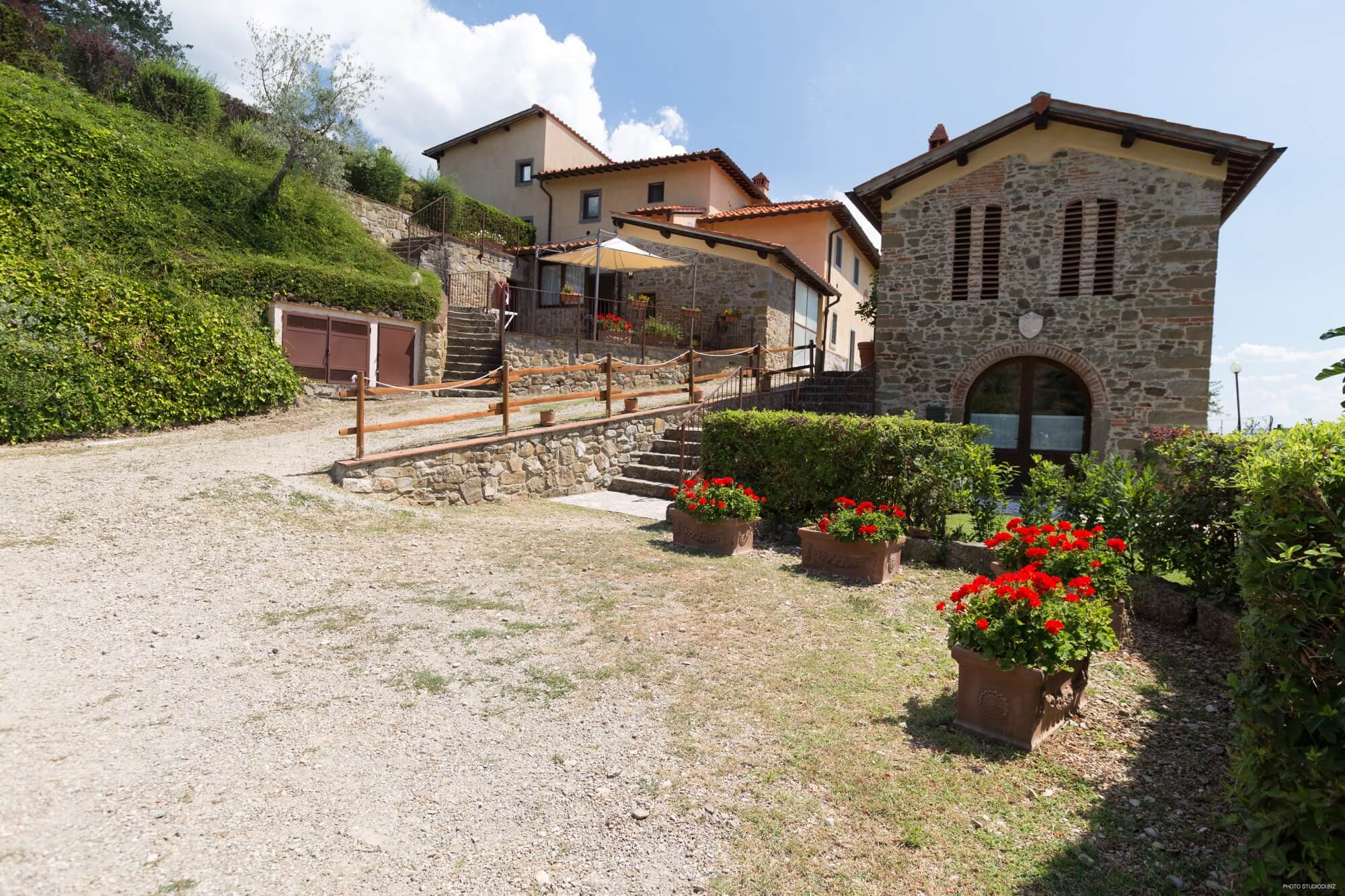 Podere Casarotta is a XVIII century Tuscan farmhouse which has been carefully restored and converted in holiday house with private swimming pool and six luxurious apartments. The villa initially belonged to the “gonfaloniere” (the ancient mayor) of Loro Ciuffenna; then was run by farmers that made a living with their own production of olive oil and wine. The farmhouse was later owned by the Antinori family, and by the S.Maria nuns. On an original stone of the main building is carved “1774”, that is the date when the farmhouse became part of the Loro Ciuffenna municipality. The villa went through a conservative restoration maintaining as much as possible the original Tuscany architecture. All rooms have terracotta floors and wood-beamed ceilings.