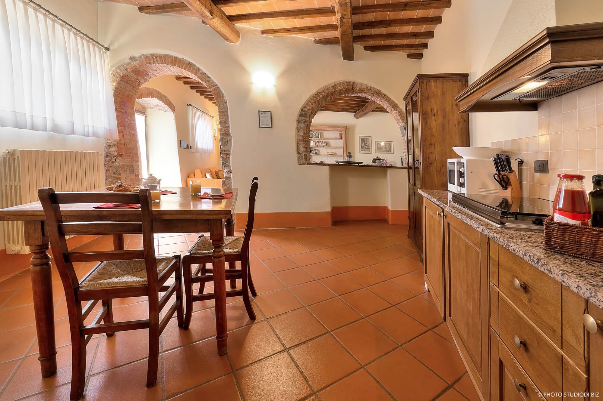 "Gli Archi" è un appartamento indipendente situato al piano terra, nella facciata orientale della casa. La sua particolarità è di avere un grande salone centrale, con cucina separata.