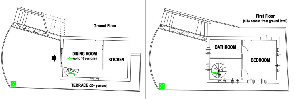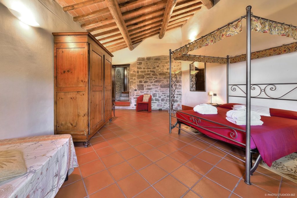 It is a very large loft, the most luxurious accommodation here at Casarotta, and it has two floors: at ground floor there is the large dining room, with a very well equipped kitchen and the stone fireplace, and at first floor the bedroom and the bathroom. In the bedroom there is one double bed, and one single bed can be added.